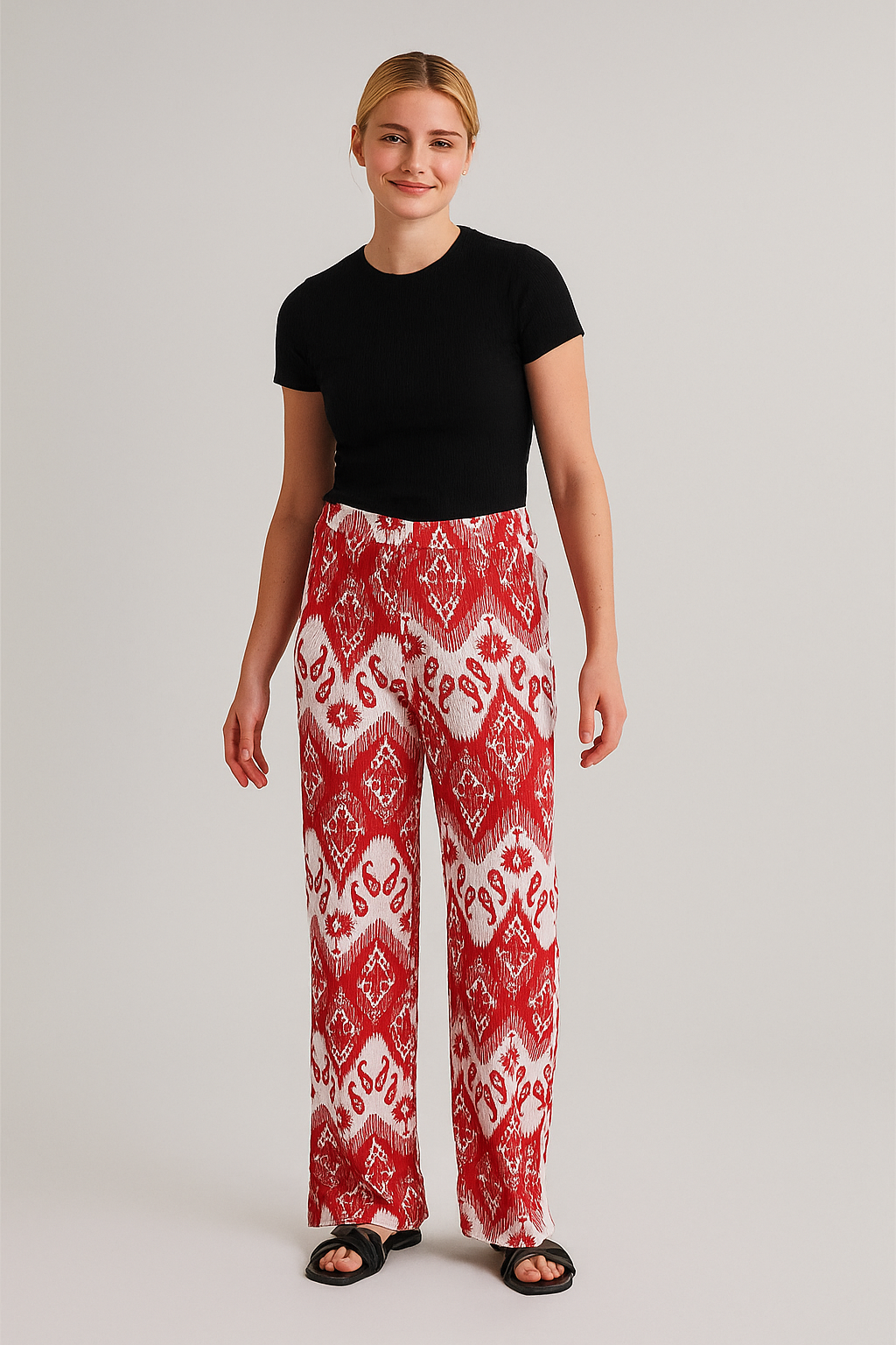 Etnik Desen Pantolon Kırmızı